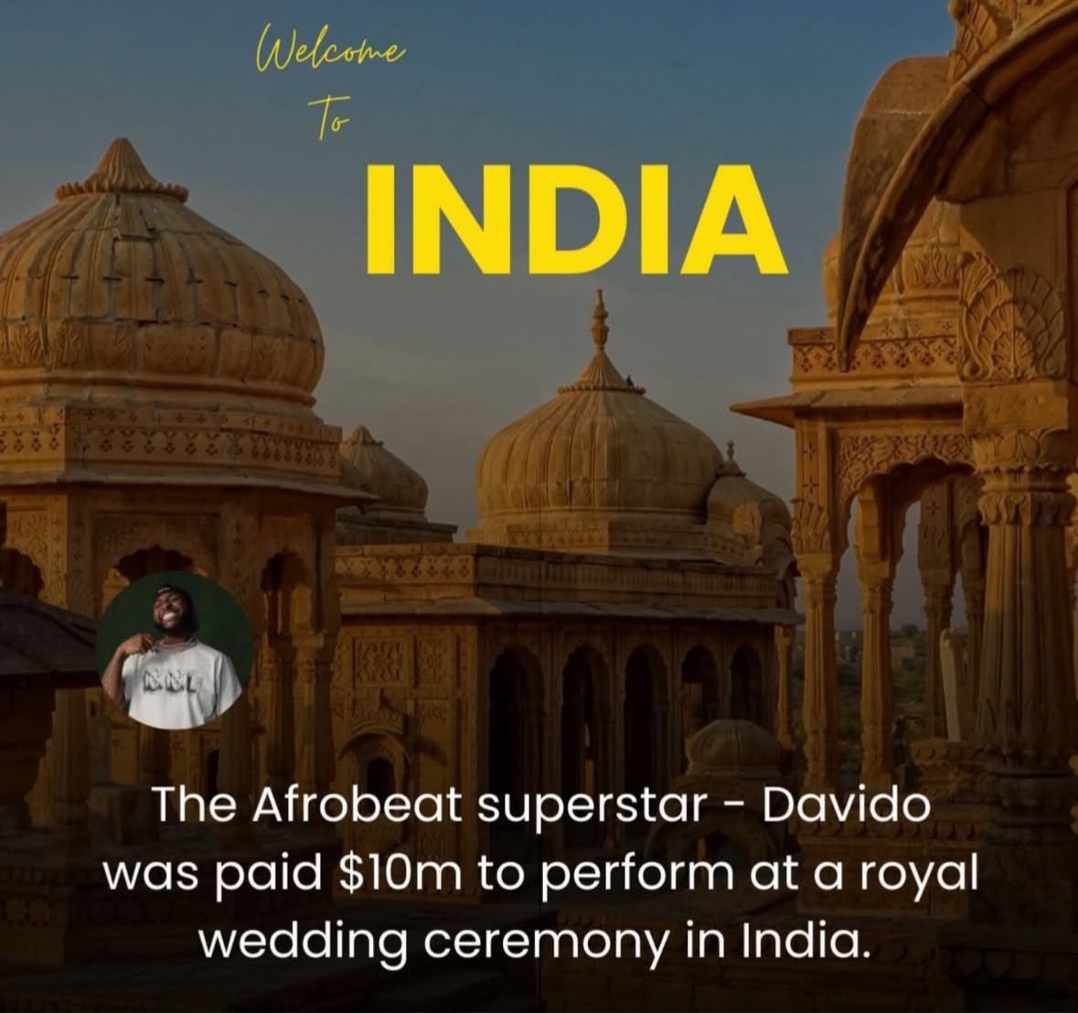 Unlike most of his outing related to tours, this time, Davido was in for business securing a deal worth a whooping currency of $10 million. He was booked to perform at a Royal wedding ceremony in India.