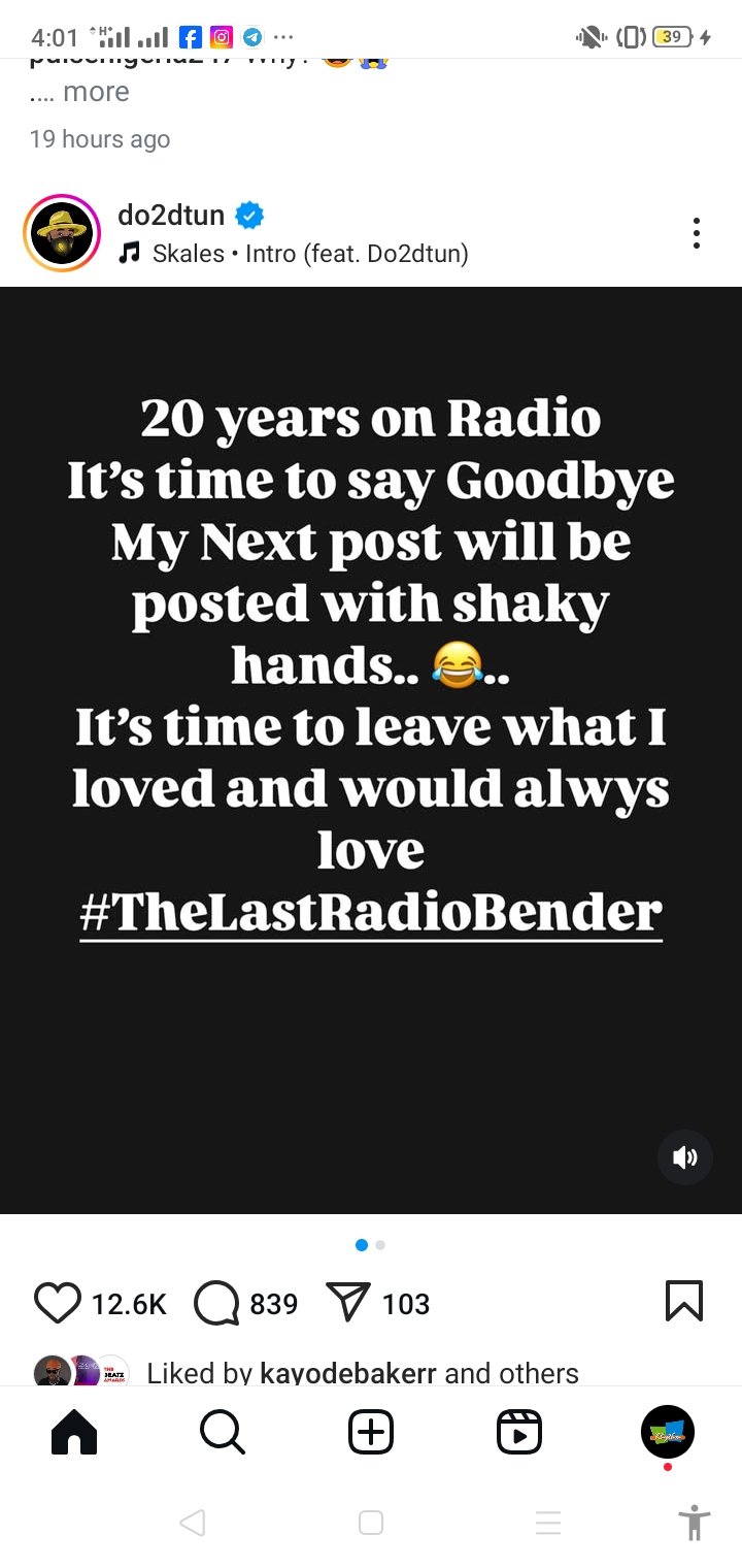 Dotun took to his Instagram page to announce his retirement on air while reflecting on his beautiful journey as a media personality. This featured his humble beginning bidding on the era he graced an intern at Cool FM Lagos in 2004 to the point of reforming his name to be the best.